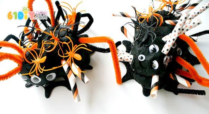 万圣节幼儿手工 粘土毛根蜘蛛制作
