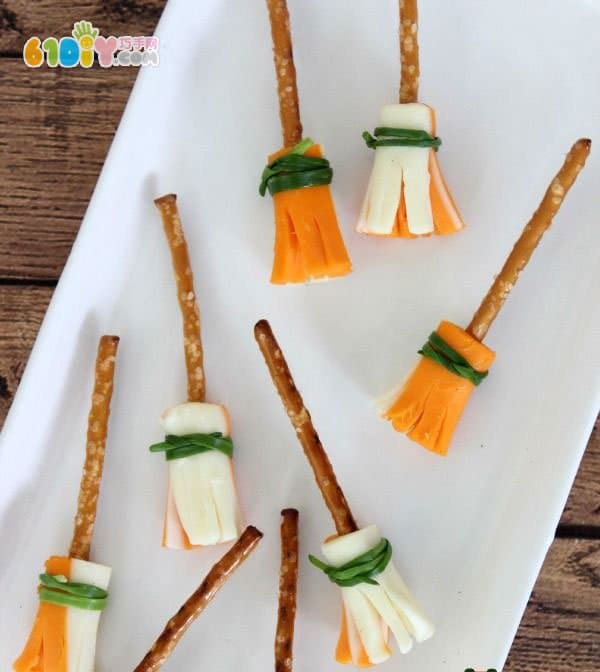 手工材料:香肠、葱、椒盐饼干条、小刀