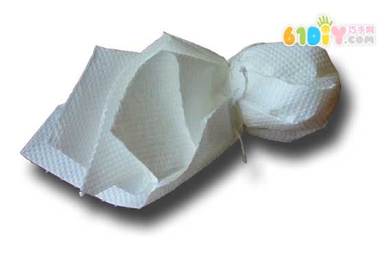 手工材料:纸巾、扎线带(面包袋上那种铁丝)、黑笔、剪刀、绳子