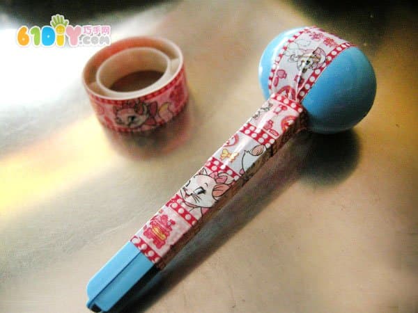 手工材料:彩色胶带、奶粉勺、米