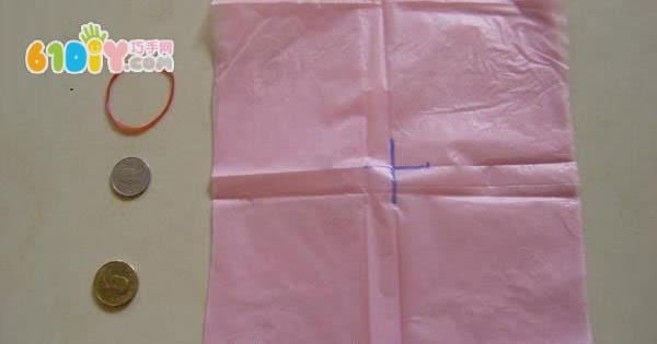 手工材料:塑胶袋一个、硬币一个、橡皮筋一条、剪刀