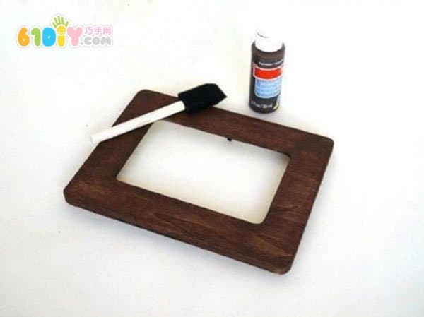 手工材料:旧相框(也可以用废纸板裁剪咯)、树枝、装饰物、胶水
