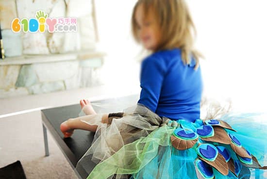 幼儿园演出服 旧蚊帐不织布制作孔雀服