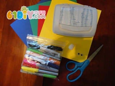 手工材料:纸巾盒、标记笔、剪刀、卡纸、