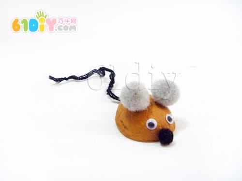 手工材料:核桃壳、毛线、毛绒球、活动眼睛、乳胶