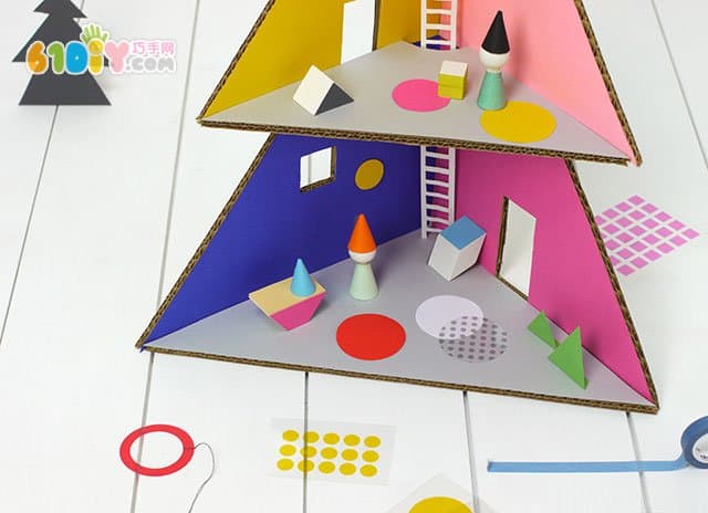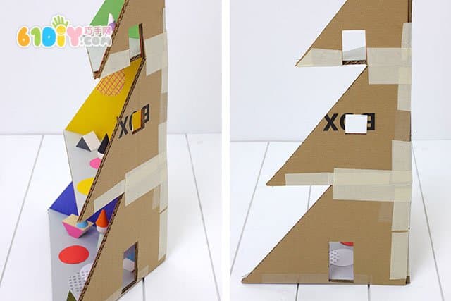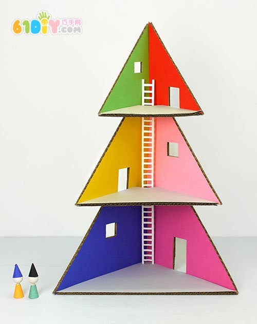 废纸板DIY圣诞树形娃娃们的房子