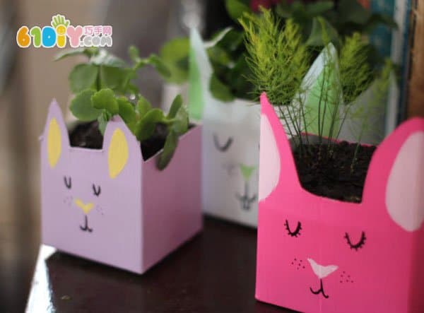 废牛奶盒DIY制作小兔子盆栽