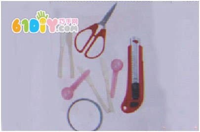 手工材料: 纸抽盒,一次性的塑料小刀和小勺,双面胶,剪刀和美工刀。 制作方法: