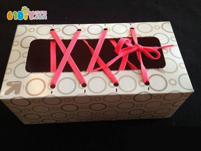 用完的纸巾盒,用打孔钳打孔,就可以用来穿鞋带玩了。