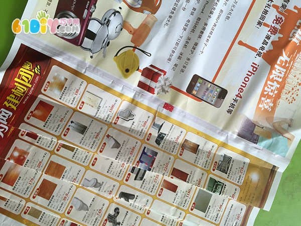 把报纸折起来,折的时候要斜着点折,才能折出收缩的腰部的效果。