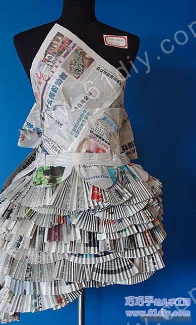 旧报纸杂志制作连衣裙