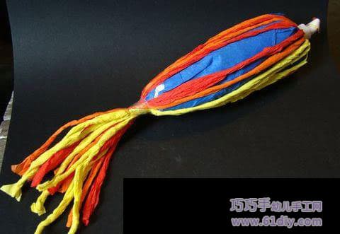 3用一张皱纹纸贴在外面,基本包住玉米棒,作为底色