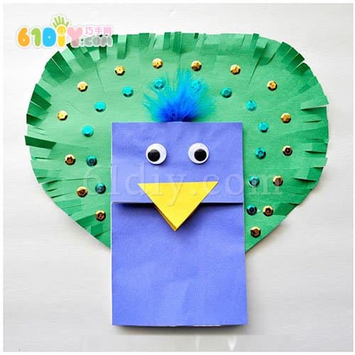 动物纸袋手偶教程 美丽的孔雀