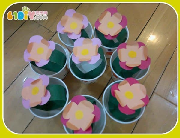 手工材料:彩色纸、纸杯、胶水、剪刀、双面胶