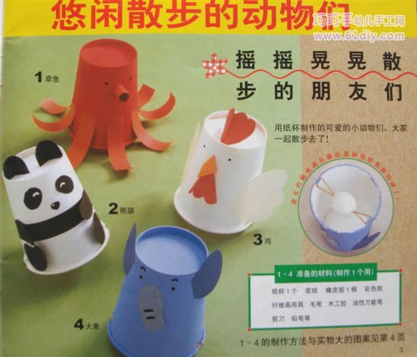 纸杯动物们:熊猫、小鸡、大象、章鱼