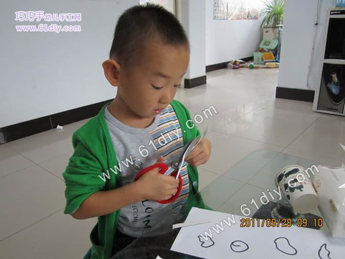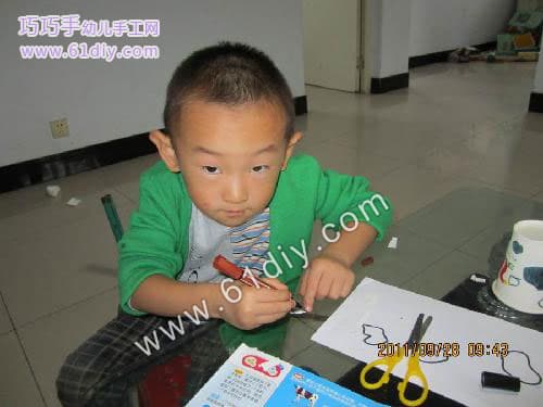 6、用纸板剪出牛尾巴,尾巴梢上涂上橙色。