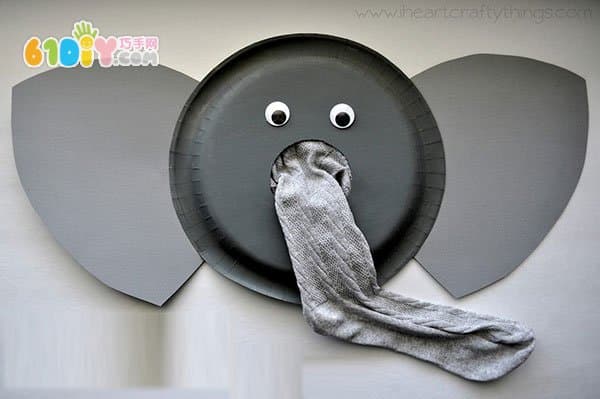 纸盘动物手工 大象手偶制作