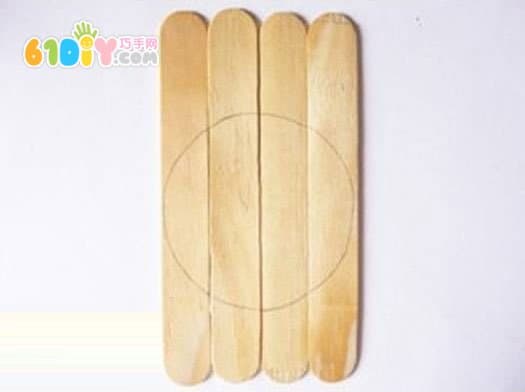 桌面:雪糕棒粘贴起来,画一个圆剪下来