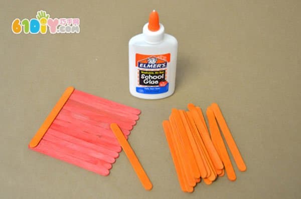 手工材料:雪糕棒、颜料、胶水、剪刀