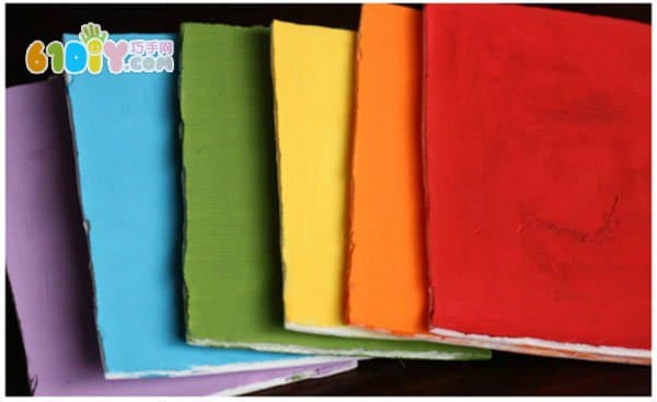把废餐盒剪成方块涂上颜色
