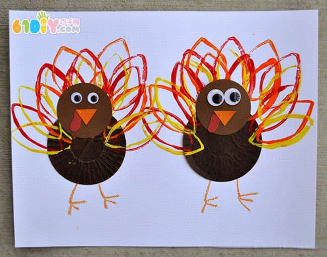 儿童纸筒手工 可爱的感恩节火鸡贴画