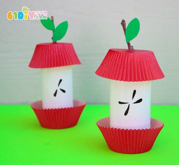儿童利用卷纸芯蛋糕纸制作苹果芯