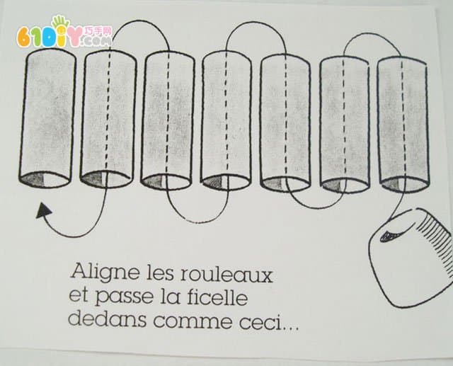 手工材料:卷 纸芯、卡纸、颜料、绳子、胶水、剪刀