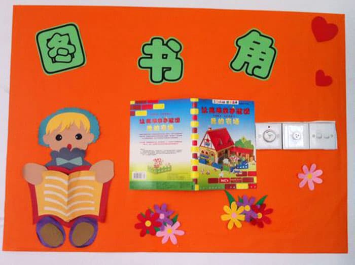 幼儿园图书角墙面布置 看书的太阳宝宝