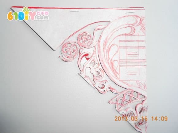 7.把画好的折叠纸压平后用钉书机钉好(画图的空处都可钉)。