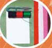 用军绿色的无纺布剪出3片15cm×12cm的矩形。其中两片裁成中空10cm×8.5cm的环形矩形框,分别用不同颜色的无纺布剪出如下火车图形。