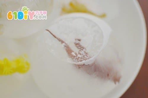 制作方法:把恐龙塞进气球,灌上水,系好后放进冰箱一晚上就好了。