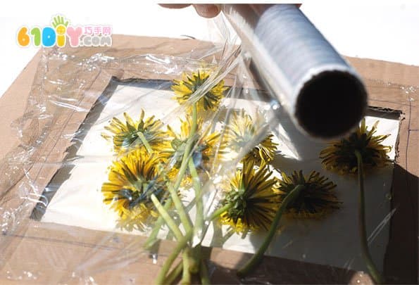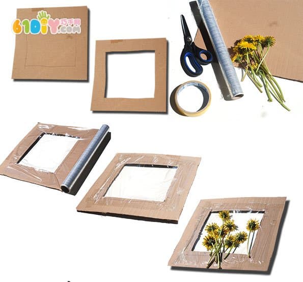 手工材料:废纸板、鲜花、保鲜膜、剪刀、双面胶、颜料