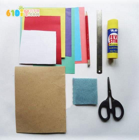 手工材料:卡纸、彩色纸、剪刀、胶水、尺子、笔、彩笔