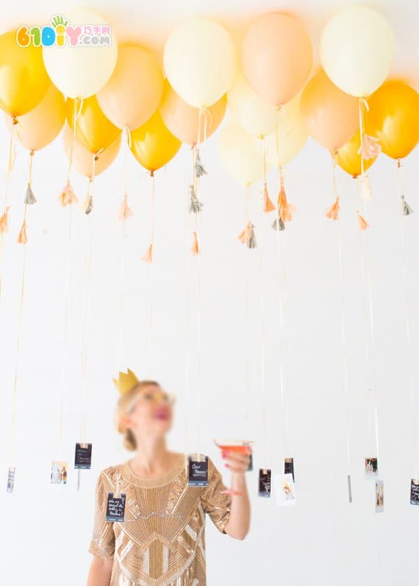 把照片悬挂在漂浮的气球下面,看看过去的一年里都发生了哪些事