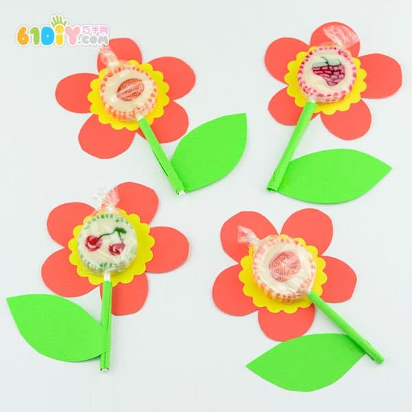 手工材料:卡纸、剪刀、压花器、棒棒糖、胶水