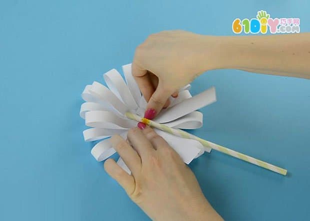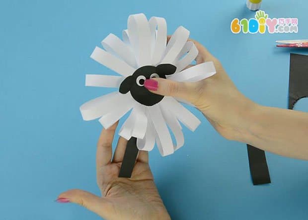 手工材料:白纸、黑色卡纸、胶水、剪刀、眼睛贴纸、 吸管、胶带