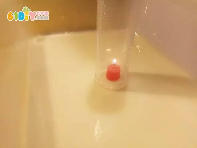 第二步:用透明杯子将蜡烛扣住。