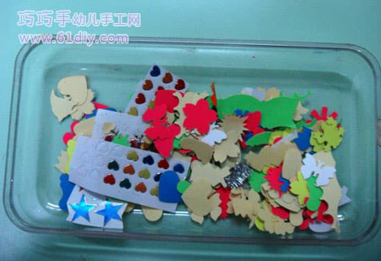 4、选择一些亮色的小彩片对贺卡进行装饰