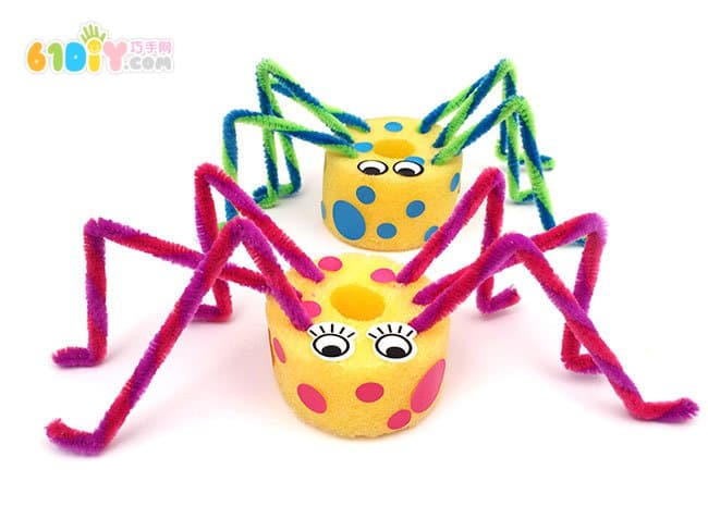 手工材料:毛根、圆点贴纸、眼睛贴纸、、海绵圈
