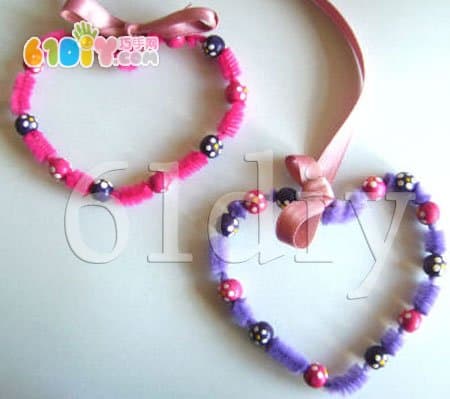 手工材料:毛根、木珠、
