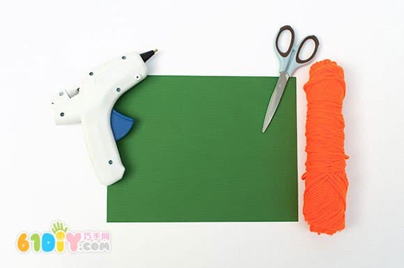 手工材料:橙色毛线、胶枪、剪刀、绿色卡纸