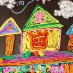 [梦幻城堡手工作品]用五颜六色的卡纸做出圆锥形的屋顶、城墙……组合起来,加上棉花做的云朵,漂亮的城堡就诞生了... |