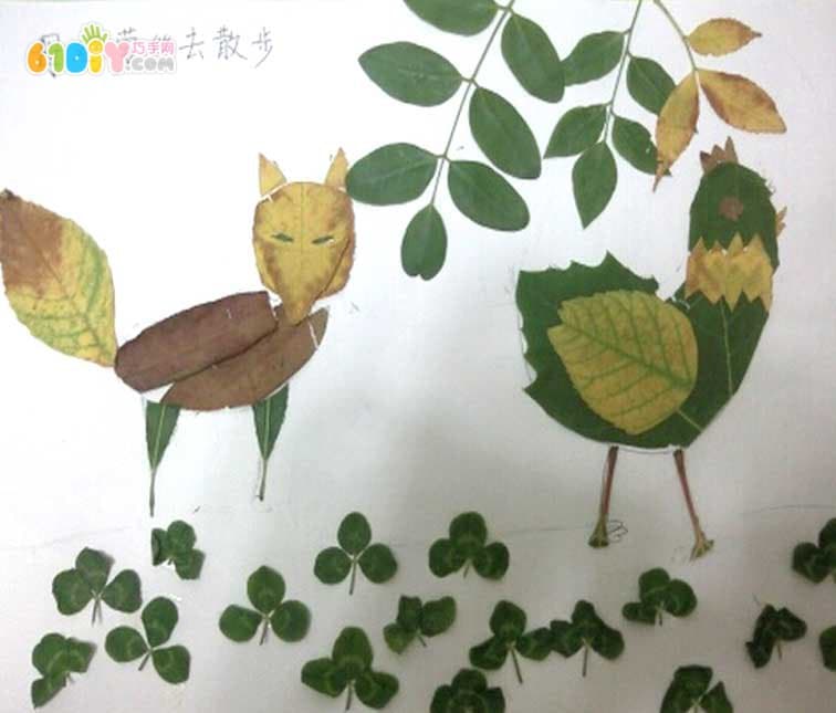狐狸树叶贴画作品