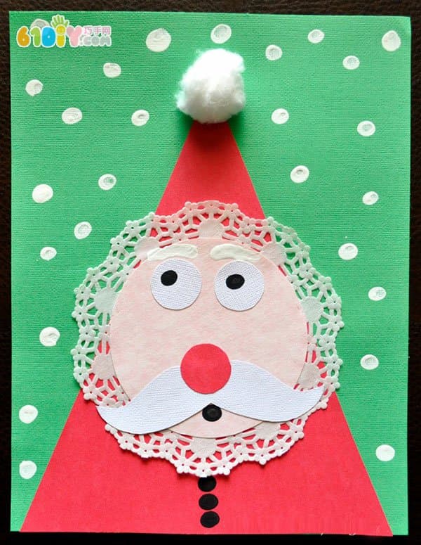 制作方法:剪一个红色大三角形,在三角形上贴上一个圆圆的