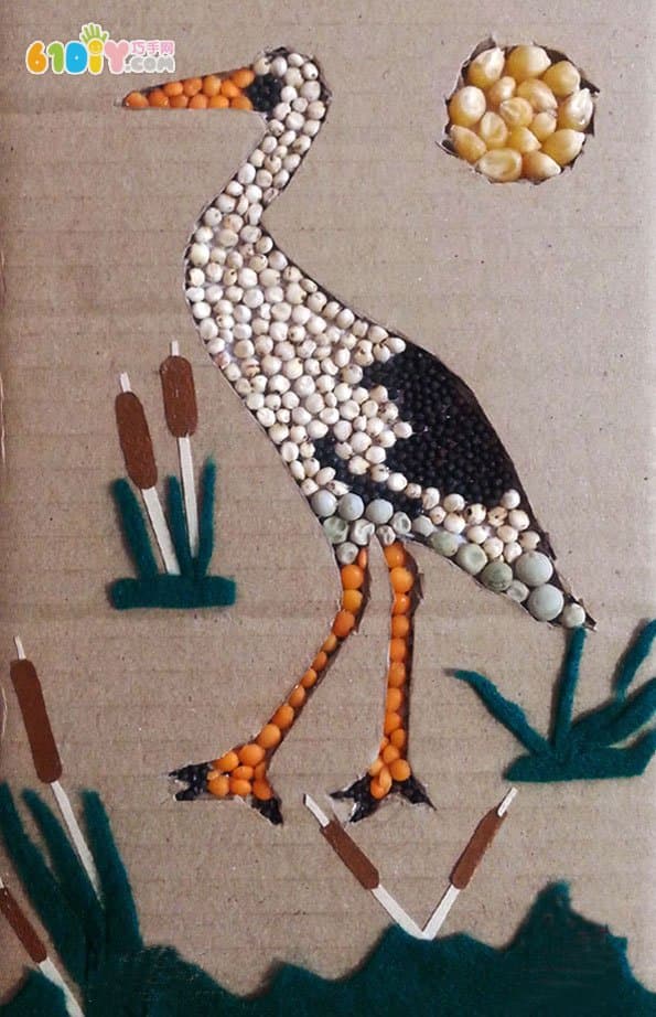 创意手工制作 废纸板小鸟豆贴画