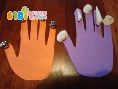 手工材料:彩色纸、笔、胶水、贝壳、剪刀、小铃铛