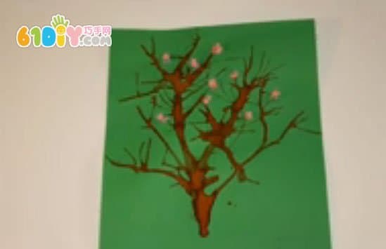 然后贴上搓纸搓的粉色花朵,桃花盛开就做好了。