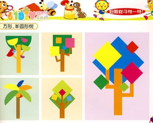 幼儿园图形拼贴树手工
