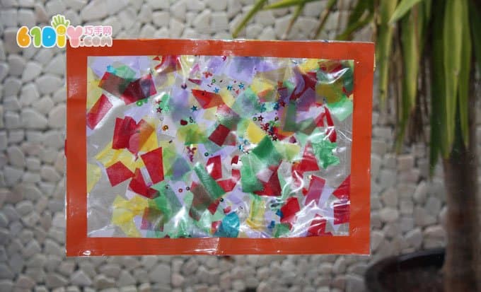 用搓纸、亮片、泡泡膜等制作漂亮的半透明效果的窗户贴画。
