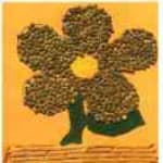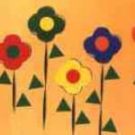 幼儿贴画:花朵 1.白亮光纸上扎出花朵的形状2.沿着硬纸板上画好的直线粘上牙签,做成花干。3.将花朵粘到硬纸板上,然后将圆形不干胶粘到每个花朵的中心。 4.将绿色三角形不干胶...